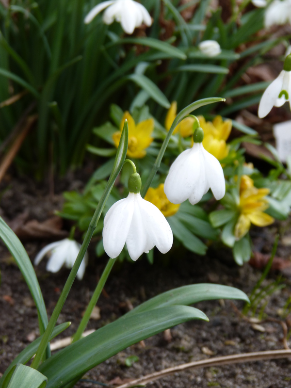 Vor ein paar Jahren schickte mir pumpot einen Tuff größere Galanthus plicatus für den Park. Ein paar Zwiebeln pflanzte ich unter Bäume ins Laub, ein paar ins eher sonnige Gras. Gut gewachsen sind sie an beiden Stellen. Bei den sonnig stehenden entdeckte ich heute Sämlinge, bei den anderen im Laub keine. Über die Sämlinge freute ich mich sehr. 8)