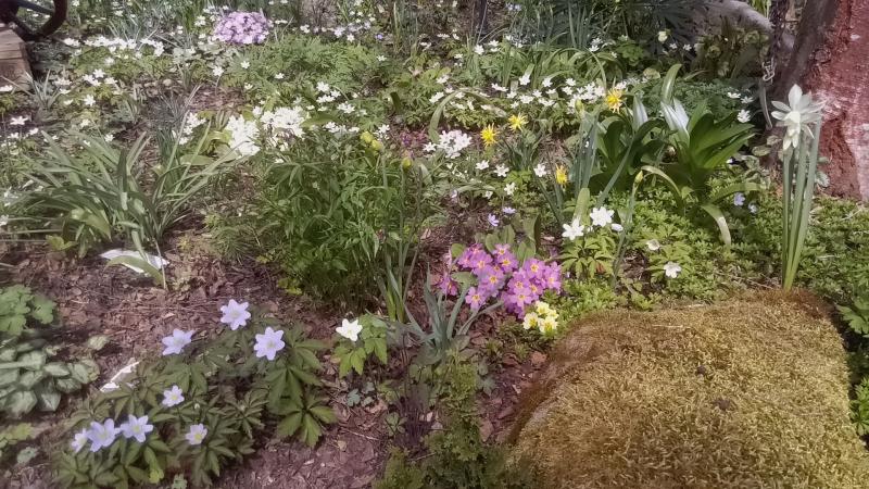 Die Buschwindröschen schwappen vom Wald rüber. Langsam, aber sie breiten sich aus, vielleicht verirrt sich eins mal zu den Birken. Weisst du, wenn ich Pflanze wäre, ich würde bei meinen (älteren) Birken auch nicht stehen wollen. ;) Pickelharter Boden! Aber ich staune immer wenn`s gut wächst bei Birken in anderen Gärten.