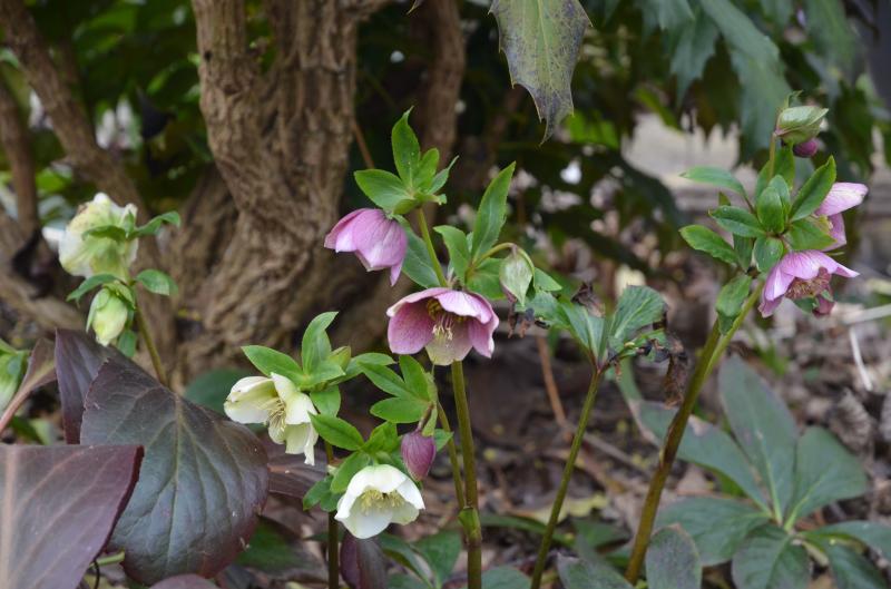 Meine ebenso und ich hätte nicht gedacht, dass die wieder so gut aufsteht. Auf der Suche nach einer bestimmten Helleborus bin ich dieser Tage zufällig in einem Forum gelandet, wo einige erzählt hatten, dass laborvermehrte Helleborus bei ihnen im Garten recht schnell verschwunden seien (leider keine Angaben in Jahren). Helleborus x hybridus können etwa so alt werden wie ein Mensch hatte ich mal gelesen? Bei "Anna" werde ich jetzt mal die Jahre zählen und scharf beobachten. Ebenfalls steinhart, denn ich hatte sie vor der letzten Frostwelle ausgepflanzt, im Wissen 8), die Mauer macht das mit dem Schutz. Ebenfalls aus dem Labor, Dinah (ich zeigte schon mal eine Blüte).