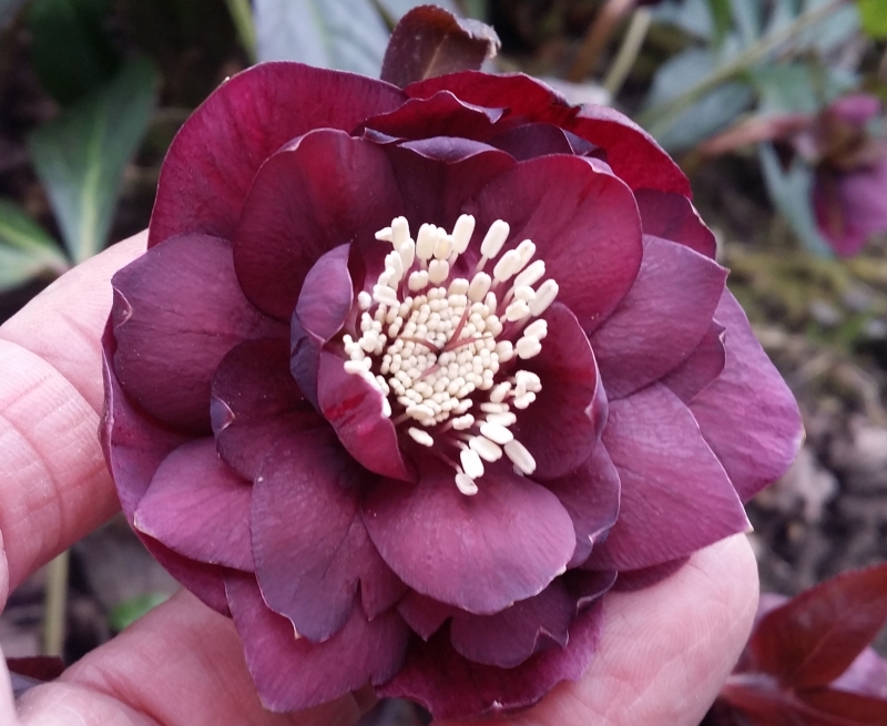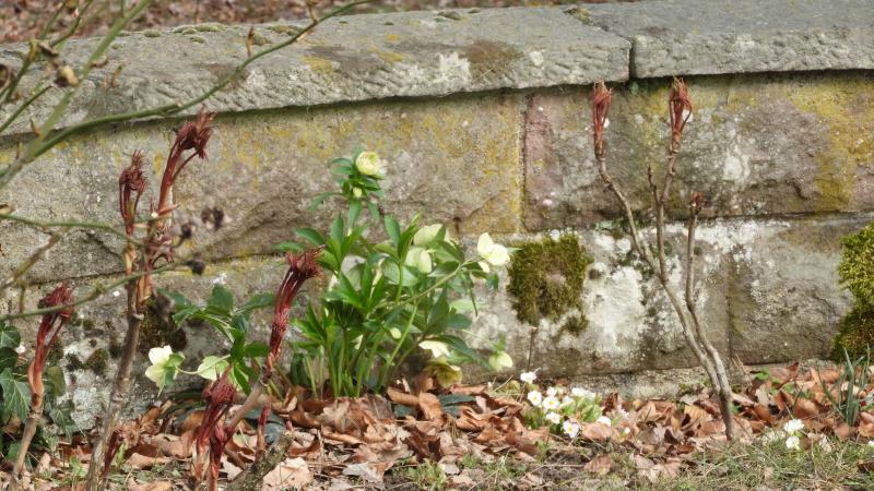 Meine ebenso und ich hätte nicht gedacht, dass die wieder so gut aufsteht. Auf der Suche nach einer bestimmten Helleborus bin ich dieser Tage zufällig in einem Forum gelandet, wo einige erzählt hatten, dass laborvermehrte Helleborus bei ihnen im Garten recht schnell verschwunden seien (leider keine Angaben in Jahren). Helleborus x hybridus können etwa so alt werden wie ein Mensch hatte ich mal gelesen? Bei "Anna" werde ich jetzt mal die Jahre zählen und scharf beobachten. Ebenfalls steinhart, denn ich hatte sie vor der letzten Frostwelle ausgepflanzt, im Wissen 8), die Mauer macht das mit dem Schutz. Ebenfalls aus dem Labor, Dinah (ich zeigte schon mal eine Blüte).