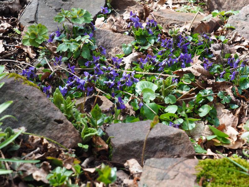 Vor ein paar Jahren, als ich den Garten von meinem Vater übernahm, gab es hier noch große Flächen mit Veilchen,- unter den Rhododendren, als Beeteinfassung...
