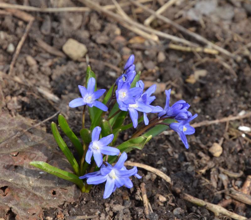 Scilla, heute hier im Garten. Es ist alles noch sehr im Beginn, der Spätwinter noch nicht richtig weg.