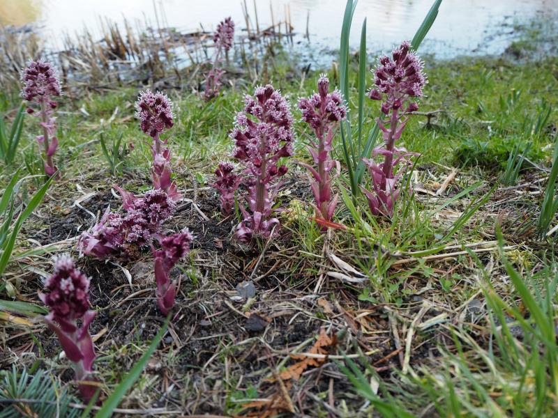 Diese sehr rote Pestwurz ist in Mecklenburger Schlossparks verbreitet. Hier wächst sie mittlerweile auch.