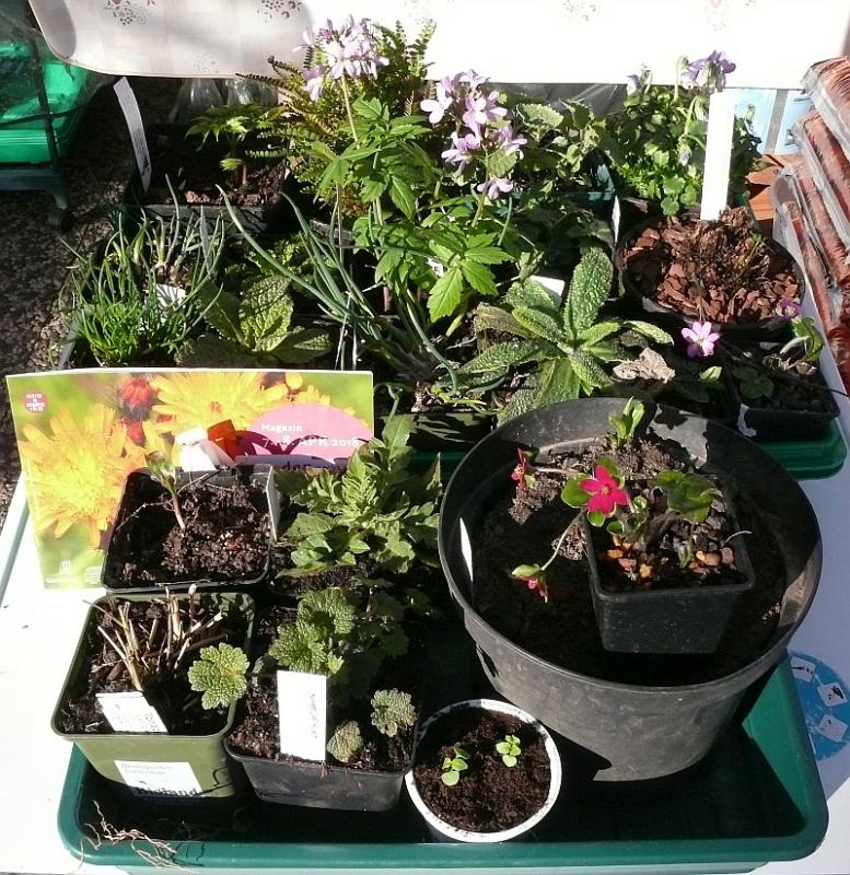 Voll war´s, sehr sonnig. Meine eher überschaubare Beute ist weitgehend verstaut: Die Winterlinge (von Kasi) sind jetzt unter der Hainbuchenhecke, die 3 Tomaten, die gestern zu so ungünstiger Zeit für kleine Tomatenkinder getopft wurden (von Dicentras GG), besehen sich noch meinen Garten durchs Fenster, neben einer gekauften Criolla Sella. 2 G. renardii habe ich noch mitgenommen, die habe ich heute Nachmittag gepflanzt. Morgen muß ich noch einen Platz für ein Bergbohnenkraut finden.