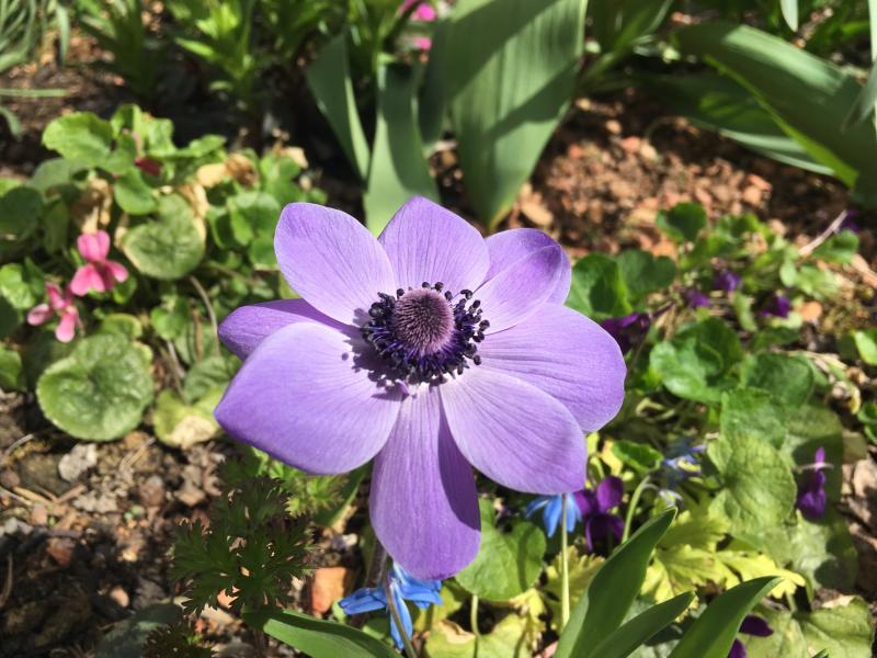 Anemone Blanda variiert ganz schön. Zwei oder drei Restepackungen im Dezember in den Boden gesteckt und von Himmelblau bis Nachtblau war alles dabei.