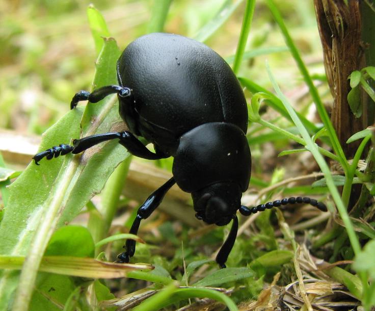 Violetter Maiwurm RL! Meloe violaceusDer V.M. kriecht träge umher und ernährt sich von Krautpflanzen.Das Weibchen legt seine Eier im Erdboden ab. Die sehr beweglichen Larven steigen an Pflanzen empor. Von dort lassen sie sich von einer Wildbiene ins Nest tragen. Hier häuten sie sich kurz darauf zu fast unbeweglichen Maden, die sich im Bienennest vom eingetragenen Pollen und Nektar ernähren.