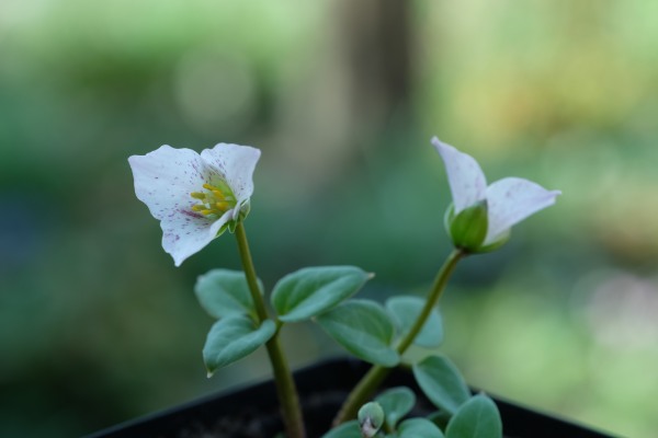 Hier blüht ein Trillium Erectum von Ian Christie, yellow with red centre. Ein Mitbringsl aus England heuer im Winter :D