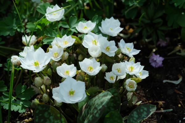 Hier blühen die ersten Sämlinge von Jeffersonia dubia, leider habe ich noch keine Sämlinge vom weißen entdeckt.
