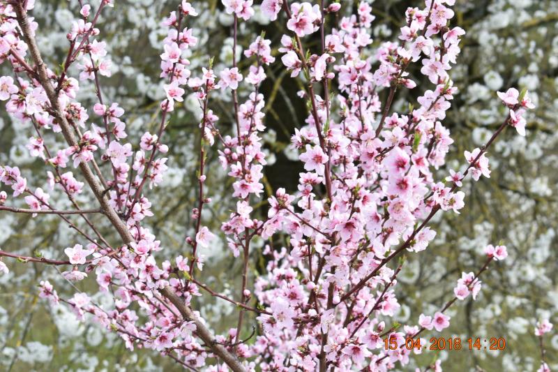 Bei mir am Haus blüht ein großer Kirschbaum, Birne und der 1. Apfel. 2 Bienen habe ich gesichtet.