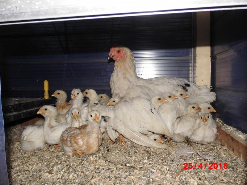 Ein paar Tage vor dem Schlupf habe ich einer Glucke neun Eier untergelegt.