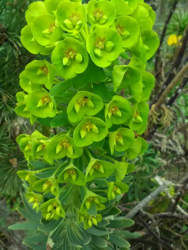 klar, darum geht es. Eine Euphorbia characias und ein Wunder, dass sie eine Blüte angesetzt hat. Das letzte Aufbäumen vor dem Untergang. Euphorbia characias in Brandenburg? Vergiss es! Meint die Staudensichtung auch.
