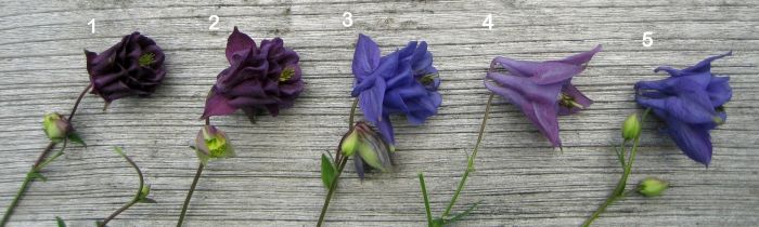 Und vorläufig zum Schluss noch zwei ulkige Exemplare von der Firma Kiepenkerl namens "Clementine Red" bzw. "Clementine Blue", die ich in meiner Gärtnerei fand; die sehen kaum noch wie Akeleien aus mit ihren nach oben zeigenden, gefüllten Blüten und dem kurzen, steifen Wuchs. Aber ich finde sie einfach interessant, mal sehen, ob sie Lust haben mitzumendeln.