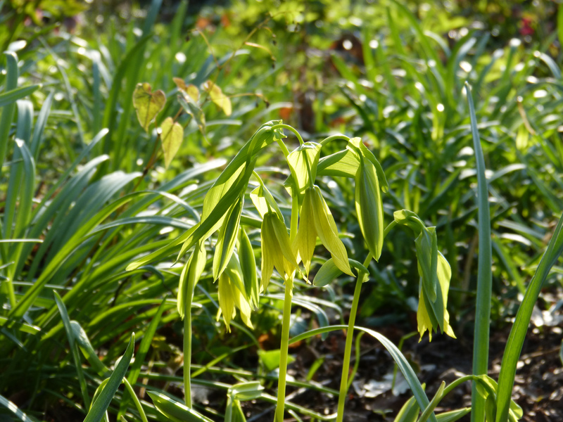 Hier blühen nun alle Uvularia grandiflora - dieses Jahr von den Schnecken unbehelligt.