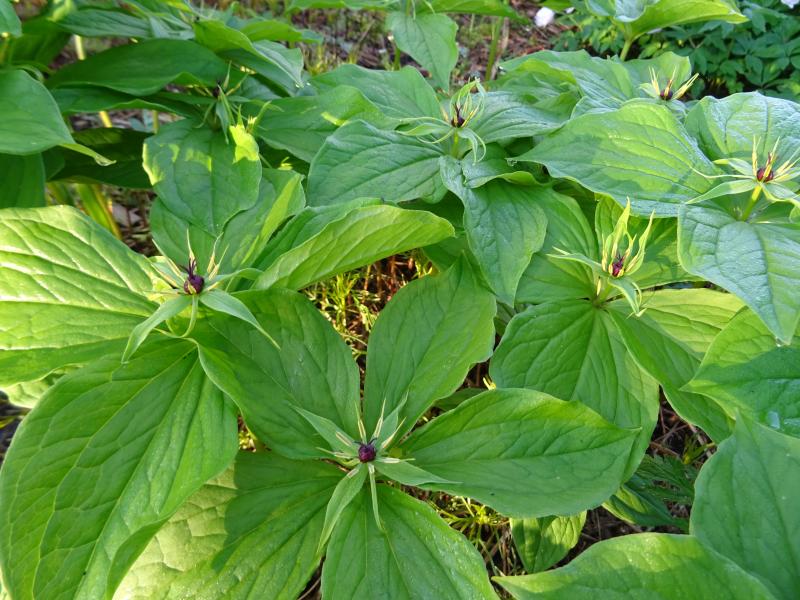 Uvularia grandiflora ist bei mir dieses Jahr wieder von den Schnecken kahl gefressen. Paris quadrifolia lassen sie in Ruhe.