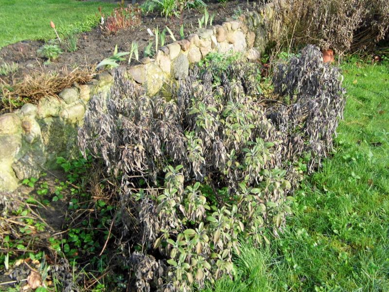 ich schließe mich an. der salbei wird im herbst runtergeschnitten, bacardischnitt, zwei finger breit über dem boden. grade treibt er wieder massiv aus. nee, nicht er sondern sie. ich habe mehrere.