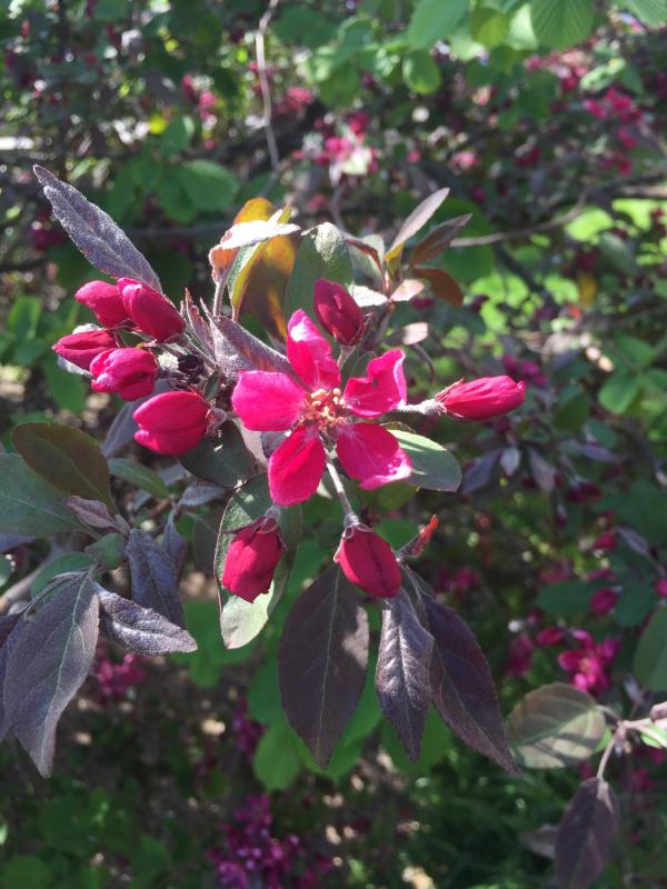 Dieser Zierapfel hat mir sehr gefallen und ich stellte mir den „Strauch“ neben meiner Felsenbirne und den „Pflümli“ vor, die beide aktuell in meinem Garten blühen. Aber ob die dann tatsächlich gleichzeitig blühen würden...