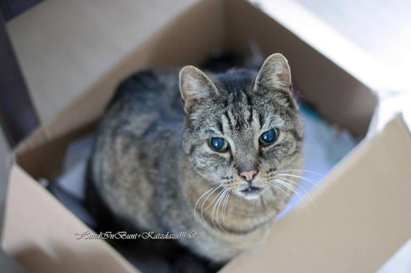 Caspar, 17 und mein ständiger Begleiter im Nähzimmer (im Müllkarton, immer.. sein Lieblingsschlafplatz). Caspar ist hier absolut gefürchtet, von Hund und Katz ;D