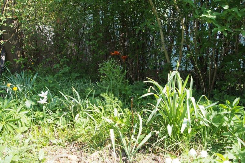 Die Madonnenlilie die davor steht bekommt schon mal 2 Stunden am Vormittag leicht schattierte Sonne. steht auch mehr als einen Meter weiter vorne.