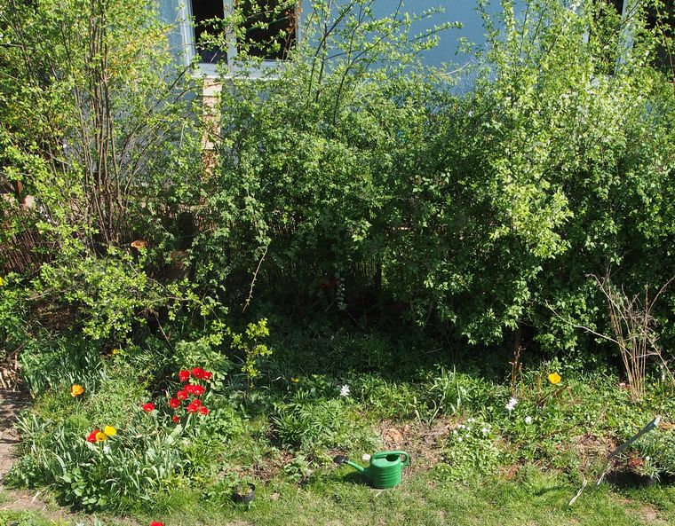 Rangezoomt das gleiche Bild, ab frühem Nachmittag wird der Garten zuverlässig vom eingenen Mietshaus verschattet.