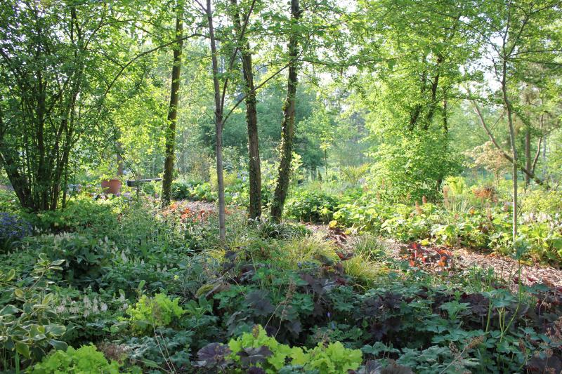 So, nach überwundener Wiesenkräuterdermatitis, die sehr heftig war, hatten wir eine Woche lang Urlaub. Es war -durch die notwendige Erweiterung des Hühnerstalles- eine sehr arbeitsaufwendige Woche. Neben dem Bau des Stalles durften wir von einem Nachbarn alte Sandsteine bekommen, dabei auch solche sehr großen ehemaligen STufen oder Fenstersimse, mit denen wir immer unsere Gartenbänke bauen. Außerdem stand die Staudenvermehrung an. Dazu aber zu einem späteren Zeitpunkt mehr. Jedenfalls kamen wir die ganze Woche über abends schlagskaputt, aber überglücklich und zufrieden nach Hause. Erst heute Morgen habe ich es mal geschafft, einige Aufnahmen zu machen, bei der die Sonne von Osten in den Schattengarten fällt.