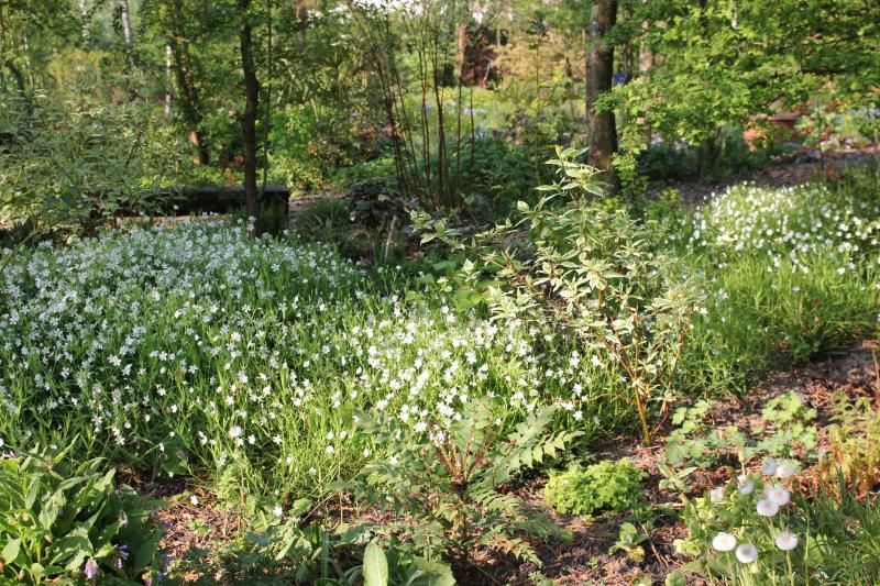 Stellaria holostea breitet sich -zu meiner großen Freude- durch Ausläufer immer mehr aus: