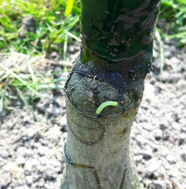 Es werden auch viele Eier nicht an den Zweigen an Knospen abgelegt , sondern auch in Bodennähe.