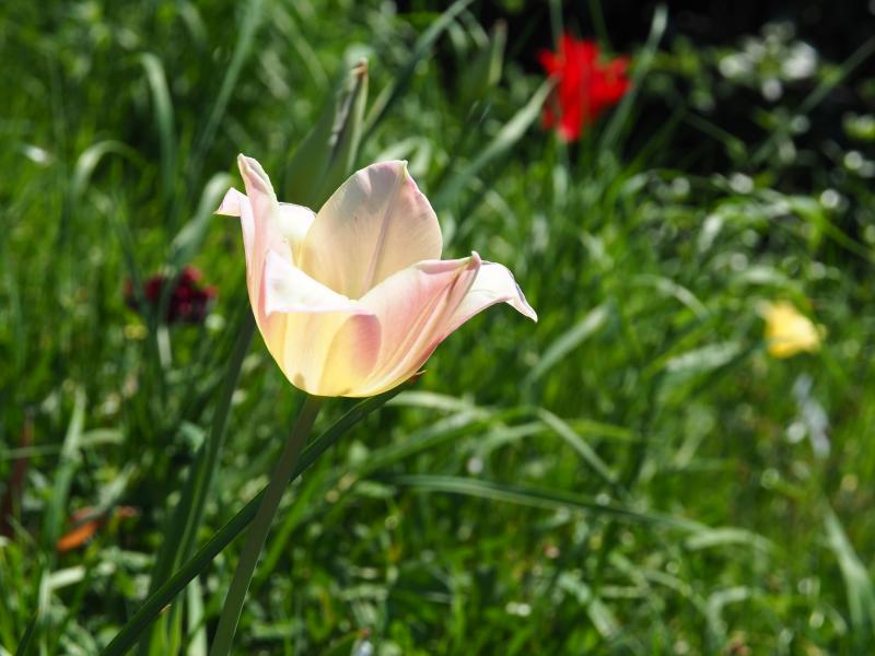 jetzt kommen nach den roten, gefolgt von den hellgelben, noch heller gelbe mit rosafarbenem Hauch. Tulipa marjoletti zum Vergleich.