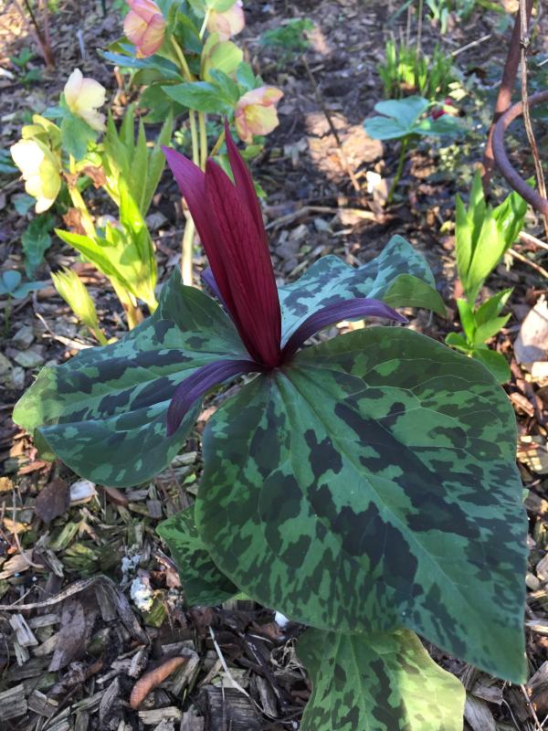 Hat wer eine Ahnung, welches Trillium dies sein könnte? War mal eine Fehllieferung. Anfangs ist die Blüte schneeweiß.