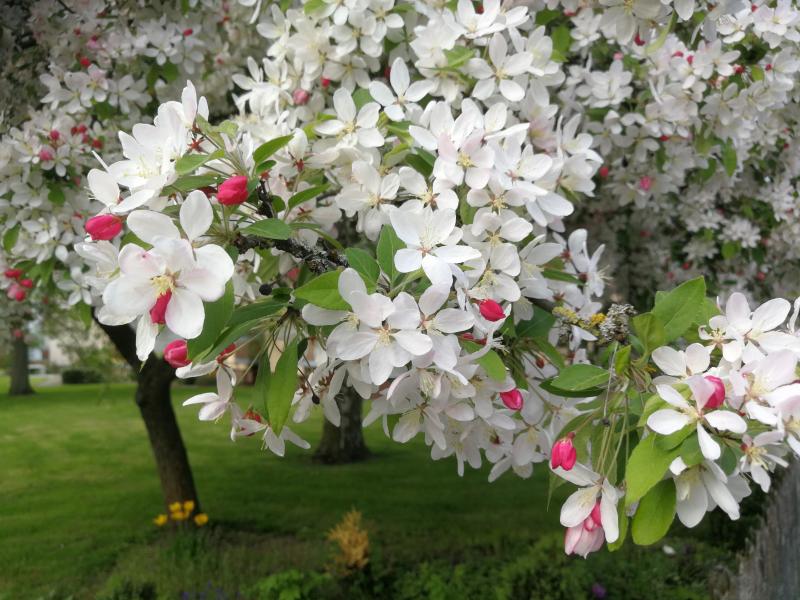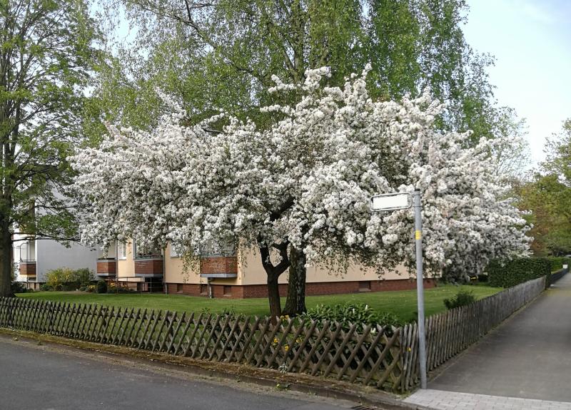 Ich tippe auf einen kleinfrüchtigen Zierapfel. Ein wunderschöner Baum. Sehr begehrenswert.