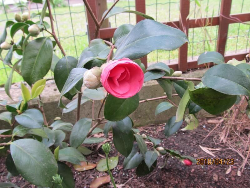 Und die im Vorjahr ausgepflanzte No-name-Kamelie beginnt nun mit der Blüte (überraschend spät). Sie hat die -17°C klaglos überstanden und war in doppeltes Winterschutz-Vlies gehüllt (bis vor zwei Wochen) - was ja angeblich der Tod für ausgepflanzte Kamelien sein soll. Wie gut, daß meine das nicht weiß und mit dieser von einem Freund seit Jahren erfolgreich praktizierten Methode wohlauf ist.