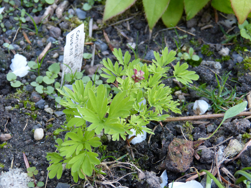Die spitzzipfelige Form von Corydalis ellipticarpa, von Tiarello, wird tatsächlich blühen. Etwas eher als die daneben stehende Form von Irm, aber wohl doch mit Überschneidung. Ich bin gespannt auf den Samenansatz. Die Blütenfarbe weicht ab, ist deutlich blasser.