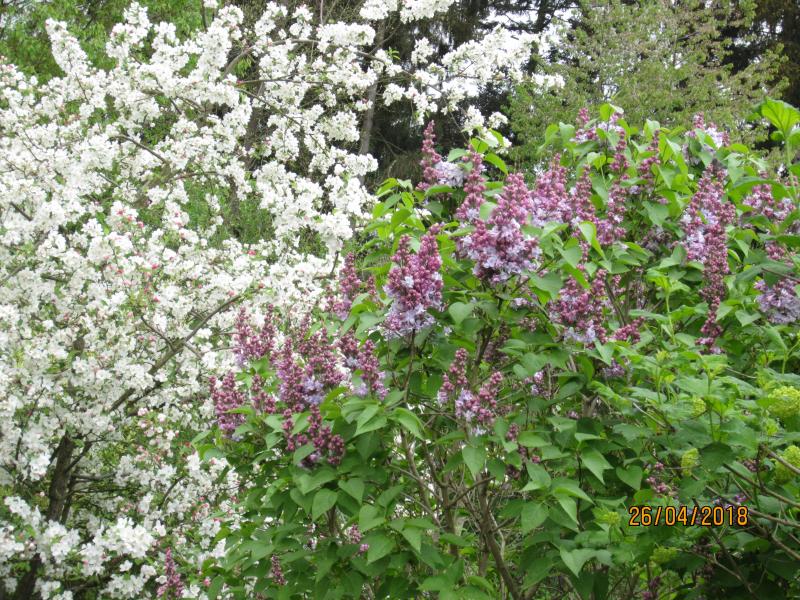 Flieder 'Victor Lemoine' und Zierapfel 'Evereste'