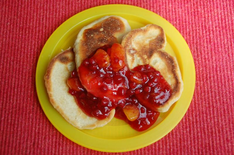 Quarkkeulchen mit Preiselbeer-Mandarinen-Kompott