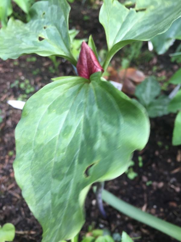 Ich vermute Trillium sulcatum. Aber das weiß bestimmt jemand noch genauer (vlt. auch T. erectum, aber da sind die Blütenblätter schmaler).