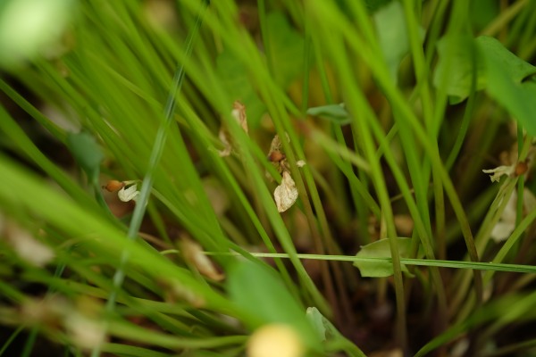 Die Blüten von Achlys triphylla sind leicht zu übersehen.