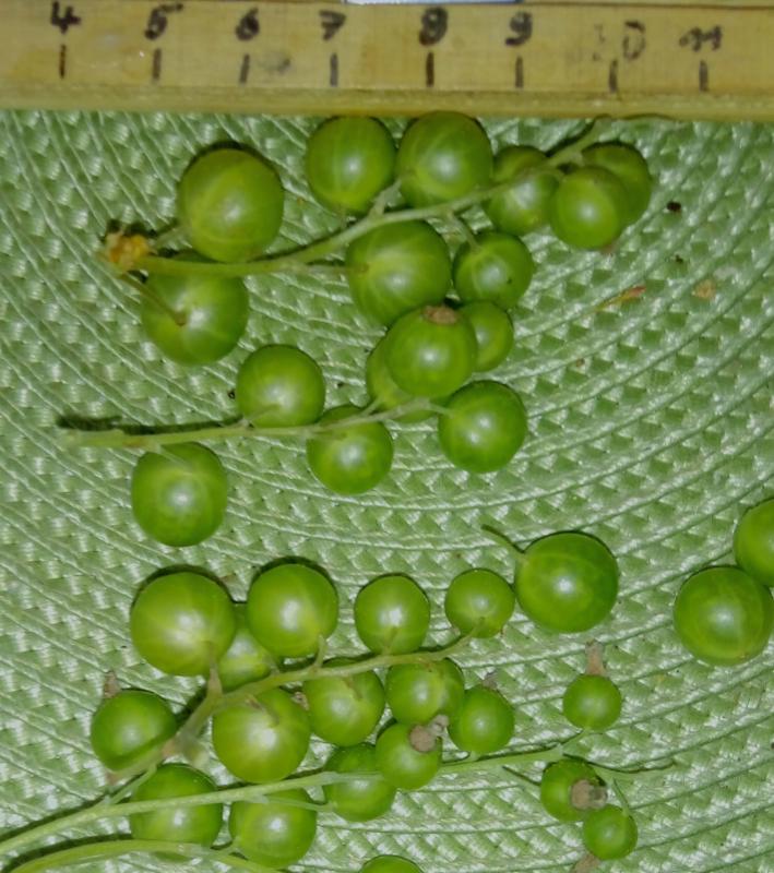 Die Beerengröße entspricht in etwa der von normal großen roten Johannisbeeren