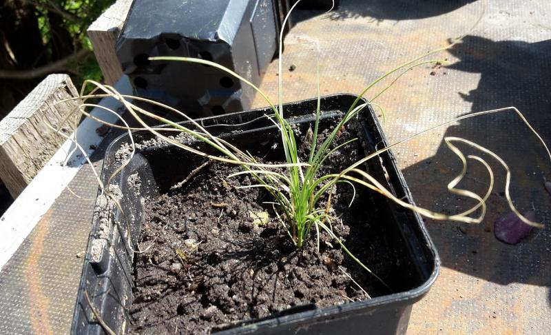 Ich habe im Garten einen Grassämling (?) gefunden. Er hat ziemlich harte Blätter, die an den Enden "gelockt" aussehen. Weiß jemand