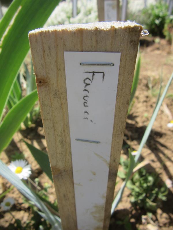 Ganz am Anfang habe ich es noch mit Etiketten in den Boden stecken probiert, wie naiv das war, wissen wir alle :P. Dann mit kleinen Pflöckchen und daneben hingesteckten Etiketten, auch das war so gar nix. Als es dann immer mehr Sorten wurden und ich irgendwann mal echte Schwierigkeiten hatte sie ohne Blüten zuzuordnen bin ich dann auf die Lattenstückchen mit fest getackerten Etiketten gekommen. Ist natürlich auch nicht unkaputtbar, bisher macht es sich aber ganz gut.