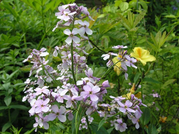 Hesperis matronalis gibt es nicht nur in weiß und knallpink, hier hat sich ein zartfliederfarbener Sämling zu einer imposanten Pflanze entwickelt.Diese Hesperis hat die gleiche Farbe wie Lunaria rediviva