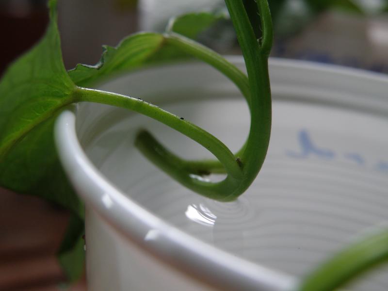 hier habe ich heute mal die Besonderheiten bei der Batatavermehrung dokumentiert. Bisher hatte ich immer die Slips von der Knolle abgetrennt und so wie sie waren ins Wasser gestellt. Ergebnis: schöne grade Stecklinge