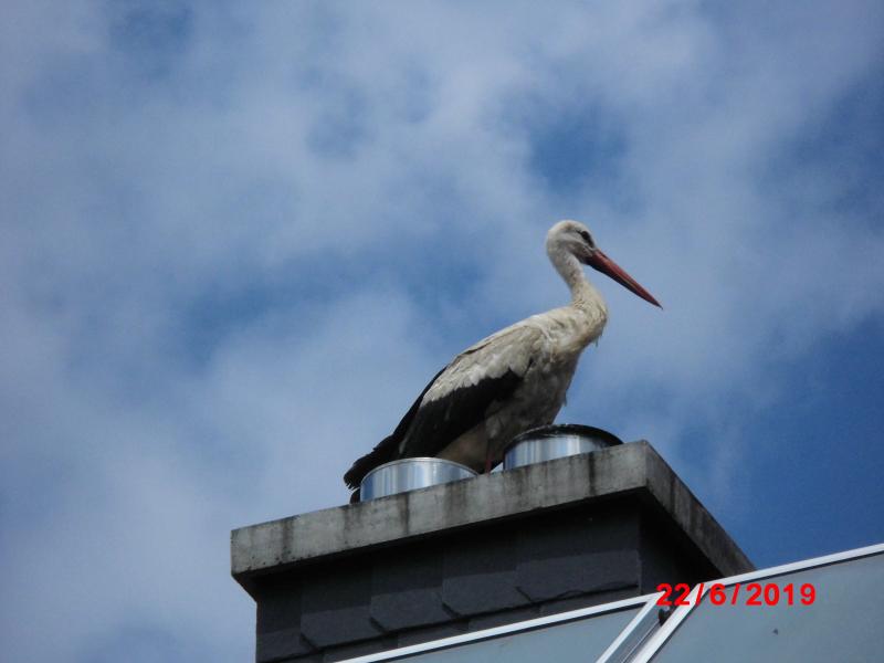 Seit zwei Wochen hämmert ein Terror-Storch morgens ab vier/halb fünf auf die Endstücken der Abzüge ein und verursacht damit einen Heidenlärm im Haus!