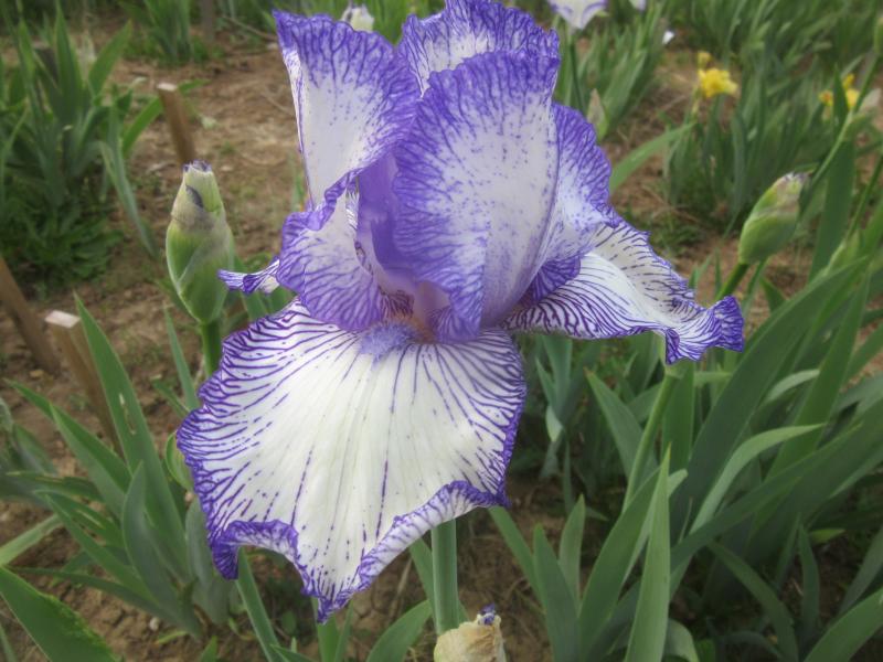 Hier sprengen endlich mehrere Iris mit Blautönen das gelbe Blütenmeer im Garten: seit dem Wochenende Iris pallida und eine mir unbekannte Mittelhohe (Bild)