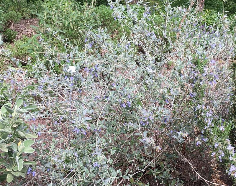Jetzt blüht Teucrium fruticans wie noch nie ( es steht hier allerdings erst seit 2016). Die Holzbienen lieben es.