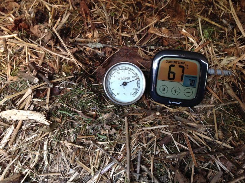 Aus dem oberen, kalt gewordenen Grasschnitt (22°C) und Material aus der Alltagsbox B)