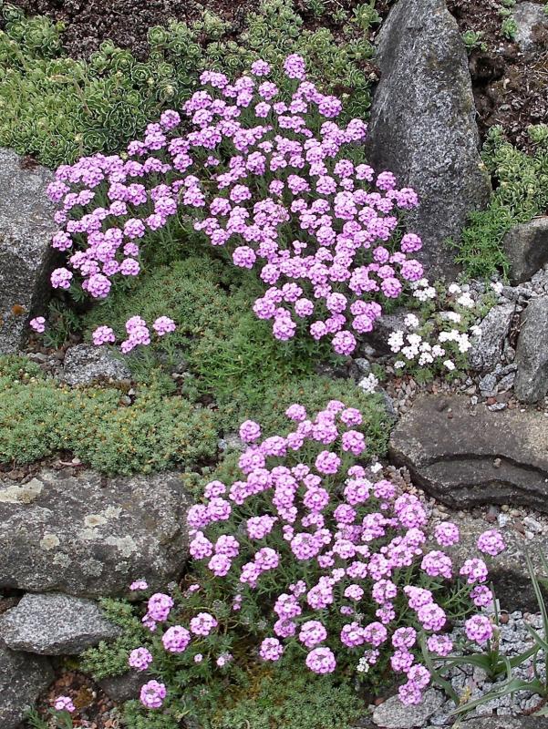 Aethionema schistosum bringt Farbe in den Steingarten. Es ist nicht langlebig, sät sich aber immer wieder selbst aus, ohne lästig zu werden.