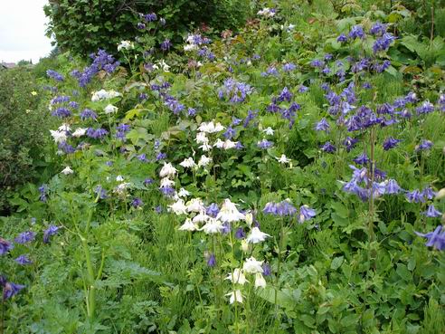 Am Wochenende hatte ich wieder die Gelegenheit viele Varianten der einfachen A. vulgaris zu bewundern, die sich seit Jahrzehnten an dieser Stelle selbst aussäen. Früher waren sie eigentlich nur leuchtend blau, ab und zu mal mit einem purpurfarbenen Touch. Mittlerweile sind viele helle Exemplare darunter, ganz zart hellblau und auch leicht rosa angehaucht. Ich hoffe nur inständig, dass unser ignoranter Nachbar, der alle paar Monate einen Rappel bekommt und einen weiteren Teil seines Grundstücks zwecks späterer Umgestaltung erst mal dem Erdboden gleichmacht, dass er also diese Ecke mit den herrlichen Akeleien nicht völlig demoliert. Ich habe die Schönen zwar schon seit Jahren auch auf unserem Grundstück, wo sie bevorzugt in den Steinfugen am Häuschen entlang wachsen, aber so eine Fläche voller Blau hab ich nicht, und es sieht einfach zauberhaft aus, wenn auch nur für wenige Wochen.Liebe Grüße Barbara