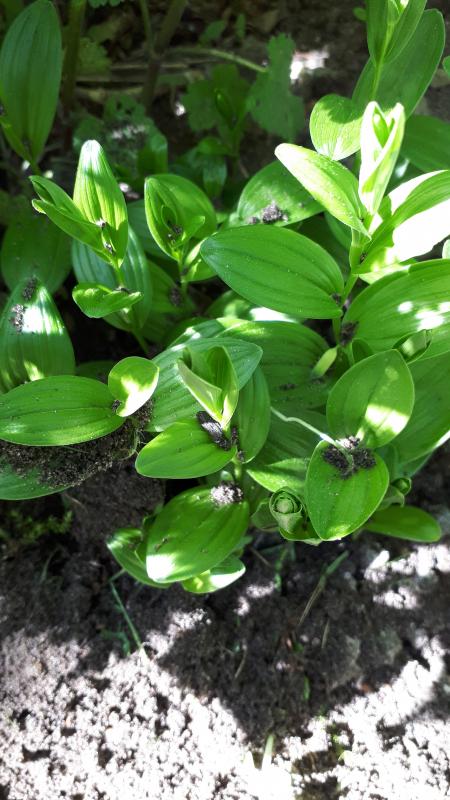 Die anderen Ruten dieser Pflanze sind "normal", entwickeln gerade Blüten.