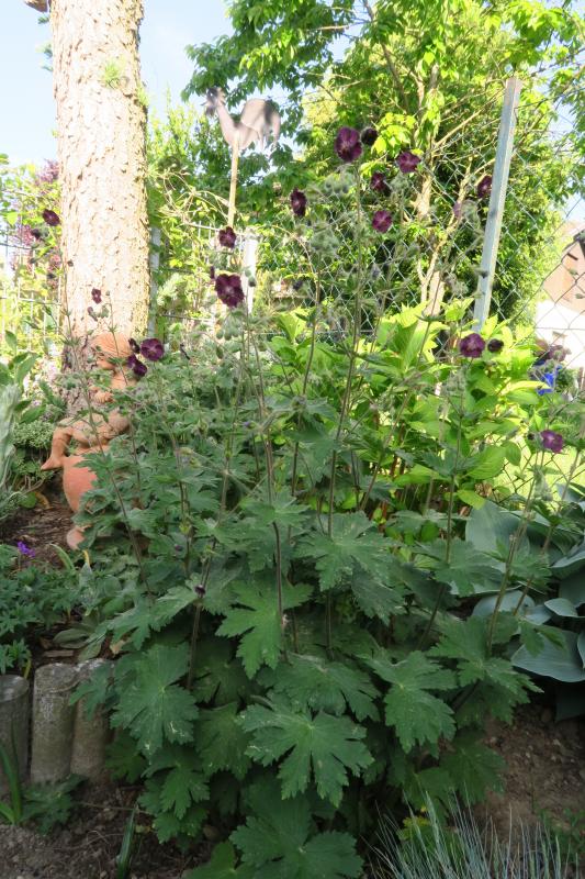 Hier im humosen Lehm, halbschattig gepflanzt wächst es gut. Es ist im Vergleich zu den anderen Phaeums nicht ganz so wüchsig und üppig, eher zierlicher. Ich hoffe auf hübsche Sämlinge.