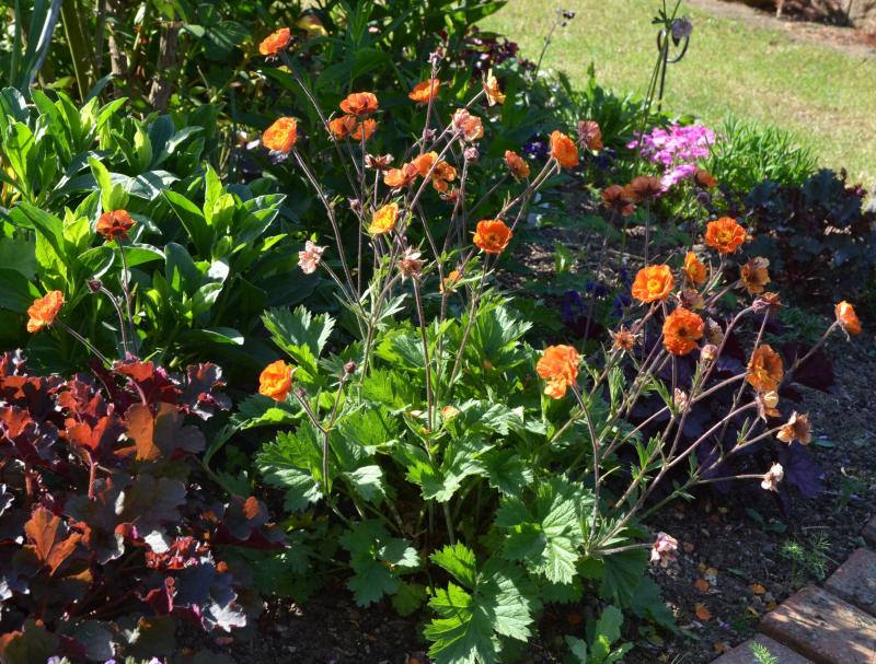 Ähm - vergiss den Namen. War gerade noch mal draußen und erstaunlicherweise steckt da doch noch ein Etikett. Wenn man dem glauben darf, ist es Geum chiloense Feuerball. Gaissmaier z.B. gibt ihn mit rot an. Ich empfinde ihn als orange.