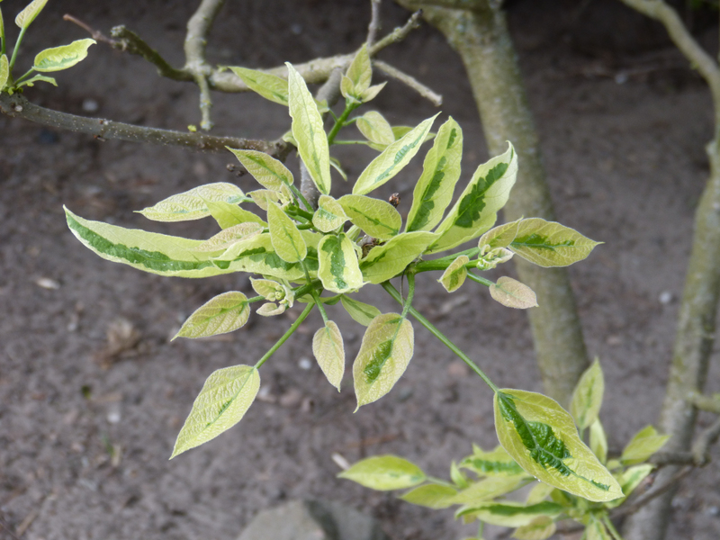 Leider recht schnell vergrünend - Catalpa bignonioides 'Variegata'.